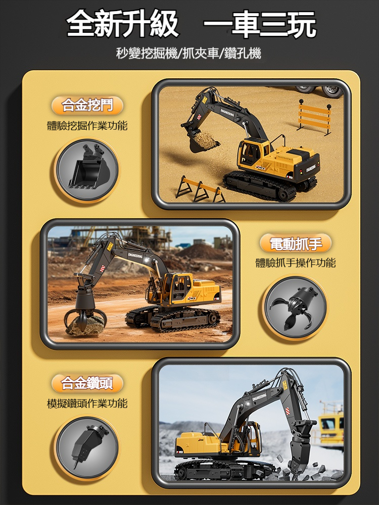【🔥年前大促銷!爆款!!🌟】搭載14通道遙控🏗️三合一功能👑讓孩子成為小小建設大師💪無論是破碎還是抓球🔧這台工程車都能勝任!!!